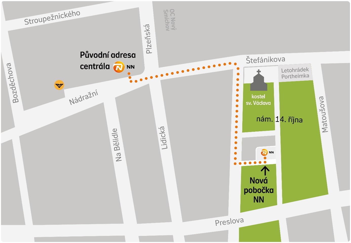 Naše nové prostory jsou v docházkové vzdálenosti cca 350 m (5 minut chůze) od současné adresy. Abyste k nám cestu nemuseli hledat nabízíme mapku: