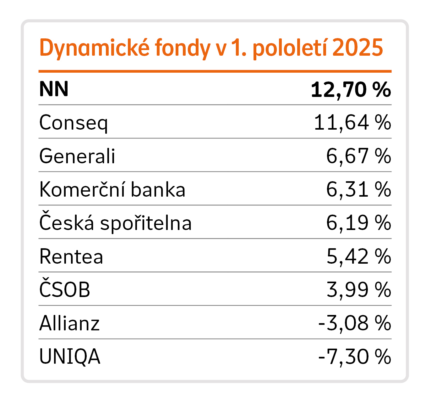 První pololetí přineslo klientům NN Penzijní společnosti krásné vysvědčení. NN Růstový fond nabídl 12,7% zhodnocení a obstál tak i v prostředí velmi rozkolísaných finančních trhů. Takto silný výsledek fond nadále řadí k nejvýkonnějším penzijním spořením na trhu. Už za rok 2024 přitom klientům NN nabídl zhodnocení blízké 19 %.