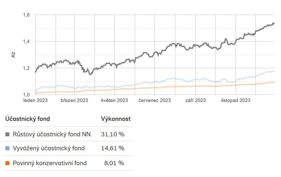 Účastnické fondy NN Penzijní společnosti završily rok 2023 s pozitivním výsledkem, a navíc všechny překonaly inflaci a přinesly klientům reálné zhodnocení peněz. NN Růstový fond dokonce kraloval celému trhu a připsal jeho účastníkům roční zhodnocení 31,1 procenta.