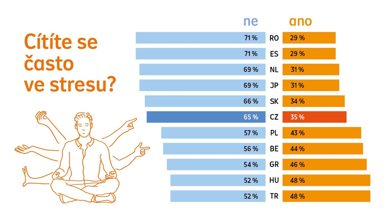 Čerstvý mezinárodní průzkum NN pojišťovny a penzijní společnosti zahrnul 11 zemí světa a ukázal, že Češi jsou na tom se stresem relativně dobře. 65 % reprezentativního vzorku dospělé české populace uvedlo, že ve svém životě nepociťuje téměř žádný nebo jen malý stres. Zbylých 35 % Čechů je stresu vystaveno občas nebo velmi často, což je ve srovnání s ostatními zeměmi pod průměrem.